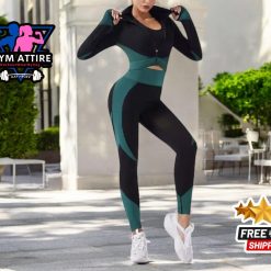 Women’s Yoga Jumpsuit | Long Sleeve Workout Bodysuit | Zipper Gym Suit | Athletic Fitness Overalls | Stretch Sportswear Tracksuit