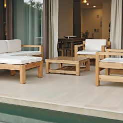 Outdoor Wooden Lounge Chair & Table Set | DIY Relaxing Patio Furniture Plans | Garden Sun Lounger with Cushions | Rustic Backyard Seating