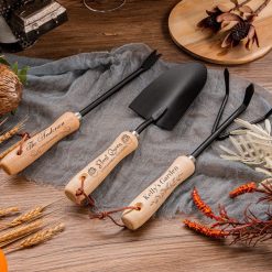 Personalised 3 Garden Tools Set & Custom Engraved Wooden Box, Teacher, Anniversary, Housewarming, Wedding, Birthday, Mom Dad Christmas Gift
