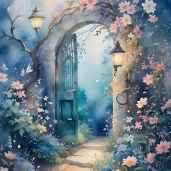 Fairytale Garden Gate – 6 Size Options – Large Decoupage Paper – Pastel Color Flowers