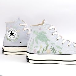 Turtle Embroidered Converse, Hand Embroidered Sea Life Sneakers, Custom High-Top Shoes, Unique Gift for Ocean Lovers, Sea Turtle Converse